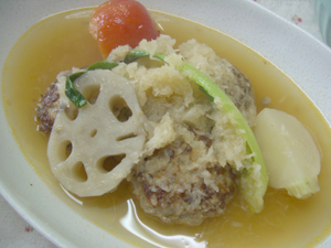 そこに焼いたハンバーグと大根おろしを少し水気を切って入れて少し煮込みました。