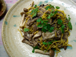 ベーコンと里いも、ねぎの白ワインソース ~フェットチーネ~