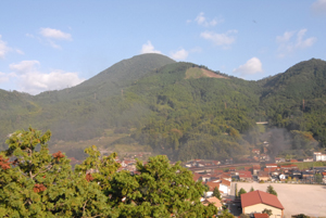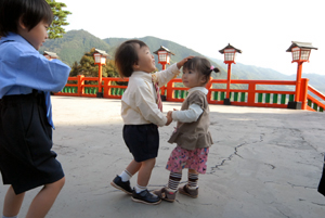 稲成神社は山の中腹にあるので、SLが町を走る様子が見えます。