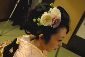 ケーキに使ったバラとヘッドを同じにと、美容師さんが当日アレンジして下さいました。
