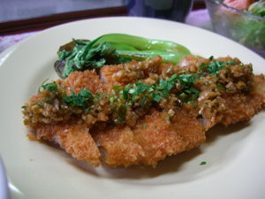 - 柔らか蒸し鶏のチリソース