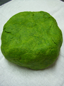 このパスタ生地にはパセリのペーストが練り込んであるのでこのような緑色をしています。