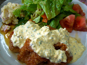 甘酢に浸してジュワっとした食感になり、タルタルソースがからみ御飯がすすみます。