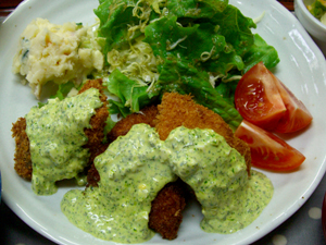 サワラのフライ グリーンソース