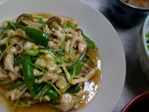 鶏胸肉は細切りにして、水・酒・卵白・片栗・塩で下味しておき、低温の油で火を通します。