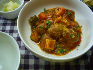 筍などを入れたカポナータとミートボールを合わせました。