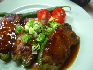 - ピーマンの肉詰め テリヤキソース