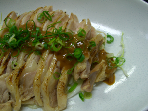 蒸し鶏の胡麻ソースかけ。