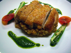 鶏のソテー バジルソース・きのこのリゾット